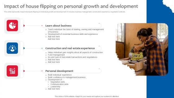 This slide represents impact of property flipping on individual growth and development. It includes business management, construction experience, negotiation skills etc. Explore a selection of the finest Impact Of House Flipping Deploying Effective Property Flipping Strategies Diagrams Pdf here. With a plethora of professionally designed and pre made slide templates, you can quickly and easily find the right one for your upcoming presentation. You can use our Impact Of House Flipping Deploying Effective Property Flipping Strategies Diagrams Pdf to effectively convey your message to a wider audience. Slidegeeks has done a lot of research before preparing these presentation templates. The content can be personalized and the slides are highly editable. Grab templates today from Slidegeeks. This slide represents impact of property flipping on individual growth and development. It includes business management, construction experience, negotiation skills etc.