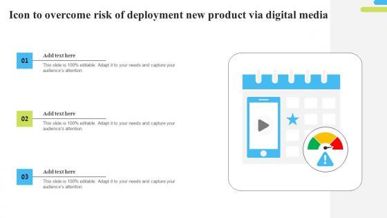 Pitch your topic with ease and precision using this Icon To Overcome Risk Of Deployment New Product Via Digital Media Clipart Pdf. This layout presents information on Icon To Overcome Risk, Deployment New Product, Via Digital Media. It is also available for immediate download and adjustment. So, changes can be made in the color, design, graphics or any other component to create a unique layout. Our Icon To Overcome Risk Of Deployment New Product Via Digital Media Clipart Pdf are topically designed to provide an attractive backdrop to any subject. Use them to look like a presentation pro.