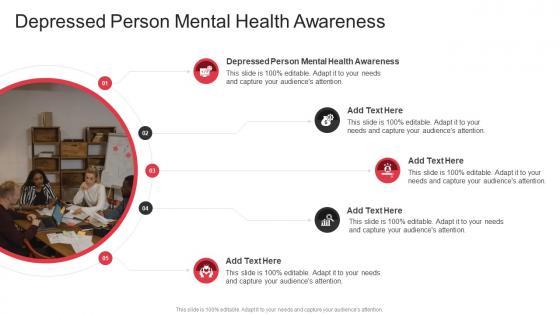 Presenting our innovatively designed set of slides titled Depressed Person Mental Health Awareness In Powerpoint And Google Slides Cpb This completely editable PowerPoint graphic exhibits Depressed Person Mental Health Awareness that will help you convey the message impactfully. It can be accessed with Google Slides and is available in both standard screen and widescreen aspect ratios. Apart from this, you can download this well structured PowerPoint template design in different formats like PDF, JPG, and PNG. So, click the download button now to gain full access to this PPT design. Our Depressed Person Mental Health Awareness In Powerpoint And Google Slides Cpb are topically designed to provide an attractive backdrop to any subject. Use them to look like a presentation pro.