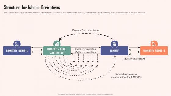 This slide defines the steps taken under the Islamic derivatives structure in which Company exchanges its floating rate exposure under the underlying Shariah-compliant facility for fixed-rate exposure. Slidegeeks is one of the best resources for PowerPoint templates. You can download easily and regulate Structure For Islamic Derivatives Comprehensive Guide Islamic Infographics PDF for your personal presentations from our wonderful collection. A few clicks is all it takes to discover and get the most relevant and appropriate templates. Use our Templates to add a unique zing and appeal to your presentation and meetings. All the slides are easy to edit and you can use them even for advertisement purposes. This slide defines the steps taken under the Islamic derivatives structure in which Company exchanges its floating rate exposure under the underlying shariah compliant facility for fixed-rate exposure.