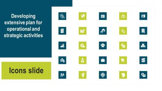 Introducing our well designed Icons Slide Developing Extensive Plan For Operational And Strategic Activities Designs Pdf set of slides. The slide displays editable icons to enhance your visual presentation. The icons can be edited easily. So customize according to your business to achieve a creative edge. Download and share it with your audience. Our Icons Slide Developing Extensive Plan For Operational And Strategic Activities Designs Pdf are topically designed to provide an attractive backdrop to any subject. Use them to look like a presentation pro.