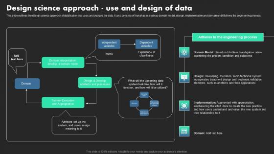 This slide outlines the design science approach of datafication that uses and designs the data. It also consists of four phases such as domain model, design, implementation and domain and it follows the engineering process. Coming up with a presentation necessitates that the majority of the effort goes into the content and the message you intend to convey. The visuals of a PowerPoint presentation can only be effective if it supplements and supports the story that is being told. Keeping this in mind our experts created Design Science Approach Use And Design Of Data Ethical Dimensions Of Datafication Brochure Pdf to reduce the time that goes into designing the presentation. This way, you can concentrate on the message while our designers take care of providing you with the right template for the situation. This slide outlines the design science approach of datafication that uses and designs the data. It also consists of four phases such as domain model, design, implementation and domain and it follows the engineering process.
