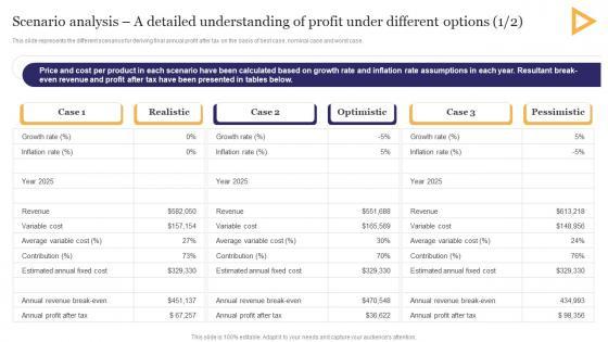 This slide represents the different scenarios for deriving final annual profit after tax on the basis of best case, nominal case and worst case. Slidegeeks has constructed Scenario Analysis A Detailed Understanding Stationery Business Plan Go To Market Strategy Inspiration Pdf after conducting extensive research and examination. These presentation templates are constantly being generated and modified based on user preferences and critiques from editors. Here, you will find the most attractive templates for a range of purposes while taking into account ratings and remarks from users regarding the content. This is an excellent jumping off point to explore our content and will give new users an insight into our top notch PowerPoint Templates. This slide represents the different scenarios for deriving final annual profit after tax on the basis of best case, nominal case and worst case.
