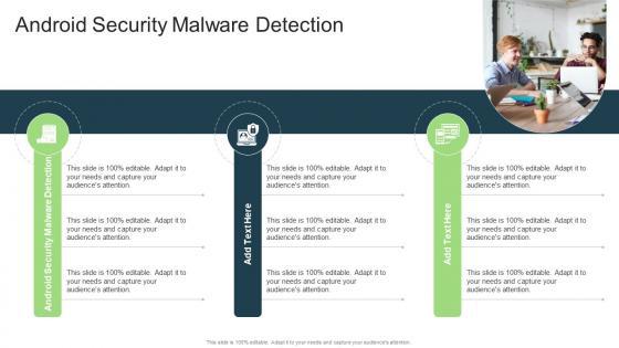 Introducing our well-designed Android Security Malware Detection In Powerpoint And Google Slides Cpb. This PowerPoint design presents information on topics like Android Security Malware Detection. As it is predesigned it helps boost your confidence level. It also makes you a better presenter because of its high-quality content and graphics. This PPT layout can be downloaded and used in different formats like PDF, PNG, and JPG. Not only this, it is available in both Standard Screen and Widescreen aspect ratios for your convenience. Therefore, click on the download button now to persuade and impress your audience. Our Android Security Malware Detection In Powerpoint And Google Slides Cpb are topically designed to provide an attractive backdrop to any subject. Use them to look like a presentation pro.