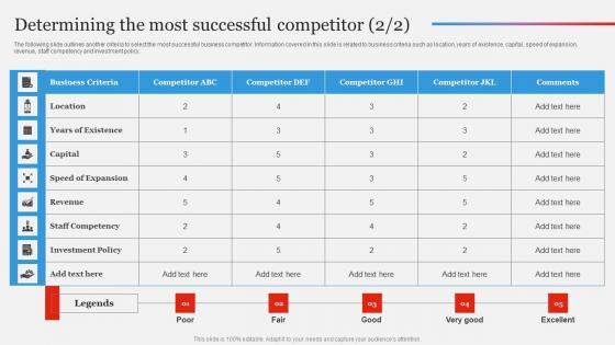 The following slide outlines the parameter to determine the most powerful and successful competitor. The comparison is drawn on the basis of year of establishment, total sales, products offered, global presence, number of employees and headquarter. From laying roadmaps to briefing everything in detail, our templates are perfect for you. You can set the stage with your presentation slides. All you have to do is download these easy to edit and customizable templates. Determining The Most Successful Branding Strategy To Gain Competitive Edge Clipart Pdf will help you deliver an outstanding performance that everyone would remember and praise you for. Do download this presentation today. The following slide outlines the parameter to determine the most powerful and successful competitor. The comparison is drawn on the basis of year of establishment, total sales, products offered, global presence, number of employees and headquarter.