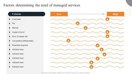 This modern and well arranged A LA Carte Business Strategy Factors Determining The Need Of Managed Services Rules PDF provides lots of creative possibilities. It is very simple to customize and edit with the Powerpoint Software. Just drag and drop your pictures into the shapes. All facets of this template can be edited with Powerpoint no extra software is necessary. Add your own material, put your images in the places assigned for them, adjust the colors, and then you can show your slides to the world, with an animated slide included.