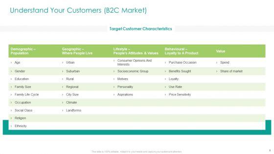 Deliver an awe-inspiring pitch with this creative developing customer service strategy understand your customers b2c market icons pdf bundle. Topics like demographic population, geographic, lifestyle can be discussed with this completely editable template. It is available for immediate download depending on the needs and requirements of the user.