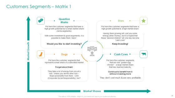Presenting developing customer service strategy customers segments matrix potential structure pdf to provide visual cues and insights. Share and navigate important information on four stages that need your due attention. This template can be used to pitch topics like customers in segment, customer lifetime value. In addition, this PPT design contains high-resolution images, graphics, etc, that are easily editable and available for immediate download.