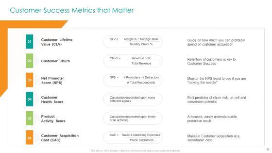 Deliver and pitch your topic in the best possible manner with this developing customer service strategy customer success metrics that matter structure pdf. Use them to share invaluable insights on customer churn, customer health score, product activity score, customer acquisition cost and impress your audience. This template can be altered and modified as per your expectations. So, grab it now.