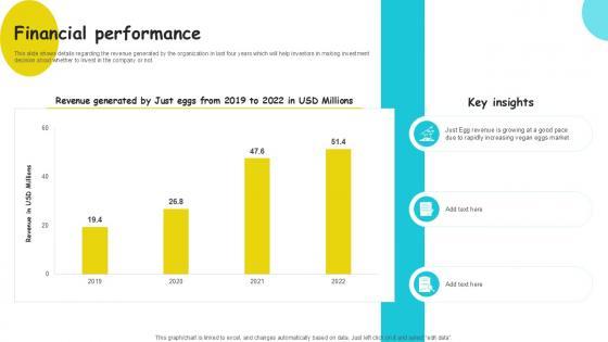 This slide shows details regarding the revenue generated by the organization in last four years which will help investors in making investment decision about whether to invest in the company or not. The Financial Performance Plant Based Eggs Developing Company Investor PPT Slide is a compilation of the most recent design trends as a series of slides. It is suitable for any subject or industry presentation, containing attractive visuals and photo spots for businesses to clearly express their messages. This template contains a variety of slides for the user to input data, such as structures to contrast two elements, bullet points, and slides for written information. Slidegeeks is prepared to create an impression. This slide shows details regarding the revenue generated by the organization in last four years which will help investors in making investment decision about whether to invest in the company or not.