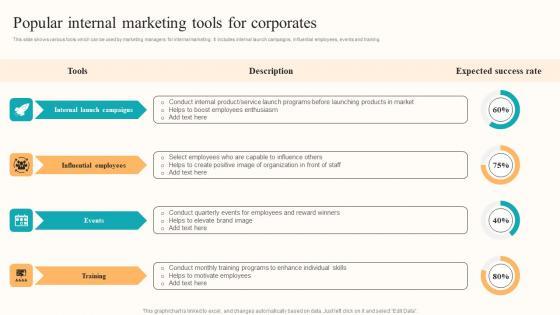This slide shows various tools which can be used by marketing managers for internal marketing. It includes internal launch campaigns, influential employees, events and training. The best PPT templates are a great way to save time, energy, and resources. Slidegeeks have 100 percent editable powerpoint slides making them incredibly versatile. With these quality presentation templates, you can create a captivating and memorable presentation by combining visually appealing slides and effectively communicating your message. Download Popular Internal Marketing Developing Employee Centric Marketing Program Ideas Pdf from Slidegeeks and deliver a wonderful presentation. This slide shows various tools which can be used by marketing managers for internal marketing. It includes internal launch campaigns, influential employees, events and training.