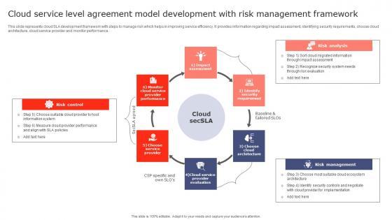 This slide represents cloud SLA development framework with steps to manage risk which helps in improving service efficiency. It provides information regarding impact assessment, identifying security requirements, choose cloud architecture, cloud service provider and monitor performance. Showcasing this set of slides titled Cloud Service Level Agreement Model Development With Risk Management Framework Inspiration Pdf. The topics addressed in these templates are Risk Control, Risk Analysis, Risk Management. All the content presented in this PPT design is completely editable. Download it and make adjustments in color, background, font etc. as per your unique business setting. This slide represents cloud SLA development framework with steps to manage risk which helps in improving service efficiency. It provides information regarding impact assessment, identifying security requirements, choose cloud architecture, cloud service provider and monitor performance.