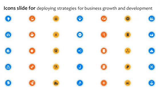 Do you have an important presentation coming up Are you looking for something that will make your presentation stand out from the rest Look no further than Icons Slide For Deploying Strategies For Business Growth And Development Strategy SS V. With our professional designs, you can trust that your presentation will pop and make delivering it a smooth process. And with Slidegeeks, you can trust that your presentation will be unique and memorable. So why wait Grab Icons Slide For Deploying Strategies For Business Growth And Development Strategy SS V today and make your presentation stand out from the rest Our Icons Slide For Deploying Strategies For Business Growth And Development Strategy SS V are topically designed to provide an attractive backdrop to any subject. Use them to look like a presentation pro.