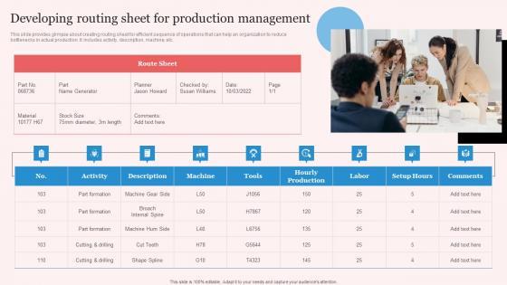 This slide provides glimpse about creating routing sheet for efficient sequence of operations that can help an organization to reduce bottlenecks in actual production. It includes activity, description, machine, etc. This Effective Manufacturing Planning And Control Administration System Developing Routing Sheet Download PDF from Slidegeeks makes it easy to present information on your topic with precision. It provides customization options, so you can make changes to the colors, design, graphics, or any other component to create a unique layout. It is also available for immediate download, so you can begin using it right away. Slidegeeks has done good research to ensure that you have everything you need to make your presentation stand out. Make a name out there for a brilliant performance.