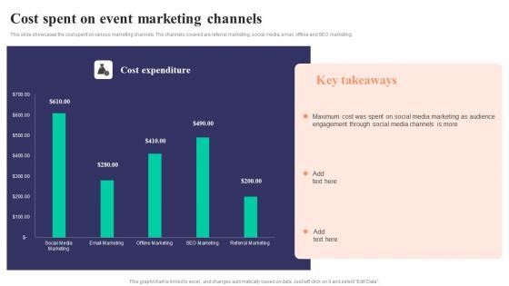 This slide showcases the cost spent on various marketing channels. The channels covered are referral marketing, social media, email, offline and SEO marketing. Slidegeeks is one of the best resources for PowerPoint templates. You can download easily and regulate Cost Spent On Event Marketing Channels Strategies To Develop Successful Structure Pdf for your personal presentations from our wonderful collection. A few clicks is all it takes to discover and get the most relevant and appropriate templates. Use our Templates to add a unique zing and appeal to your presentation and meetings. All the slides are easy to edit and you can use them even for advertisement purposes. This slide showcases the cost spent on various marketing channels. The channels covered are referral marketing, social media, email, offline and SEO marketing.