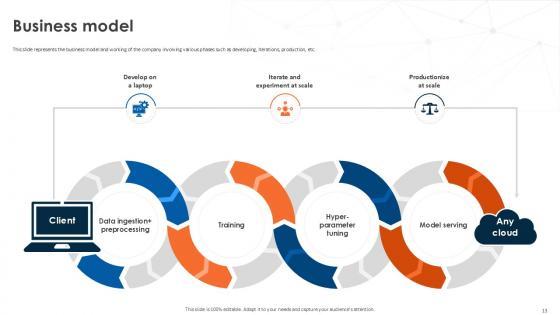 Mentioned slide displays information about the business values that organization will get after introducing MLOps. Values covered are model registry, code management, database management and shared environment.Presenting machine learning development and operations cycle it business value that mlops will provide background pdf to provide visual cues and insights. Share and navigate important information on four stages that need your due attention. This template can be used to pitch topics like model registry, code management, dataset management In addtion, this PPT design contains high resolution images, graphics, etc, that are easily editable and available for immediate download.