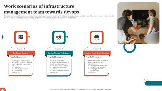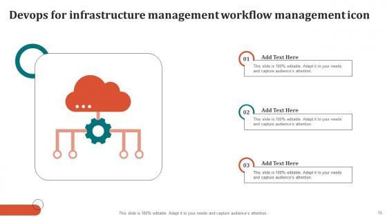 Boost your confidence and team morale with this well-structured Devops For Infrastructure Management Ppt Powerpoint Presentation Complete Deck With Slides This prefabricated set gives a voice to your presentation because of its well-researched content and graphics. Our experts have added all the components very carefully, thus helping you deliver great presentations with a single click. Not only that, it contains a set of seventeen slides that are designed using the right visuals, graphics, etc. Various topics can be discussed, and effective brainstorming sessions can be conducted using the wide variety of slides added in this complete deck. Apart from this, our PPT design contains clear instructions to help you restructure your presentations and create multiple variations. The color, format, design anything can be modified as deemed fit by the user. Not only this, it is available for immediate download. So, grab it now. Our Devops For Infrastructure Management Ppt Powerpoint Presentation Complete Deck With Slides are topically designed to provide an attractive backdrop to any subject. Use them to look like a presentation pro.