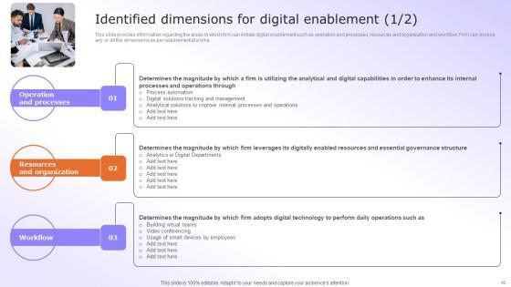 This slide provides information regarding the areas in which firm can initiate digital enablement such as operation and processes, resources and organization and workflow. Firm can choose any or all the dimensions as per requirement at a time. If you are looking for a format to display your unique thoughts, then the professionally designed Digital Advancement Checklist Identified Dimensions For Digital Enablement Formats Pdf is the one for you. You can use it as a Google Slides template or a PowerPoint template. Incorporate impressive visuals, symbols, images, and other charts. Modify or reorganize the text boxes as you desire. Experiment with shade schemes and font pairings. Alter, share or cooperate with other people on your work. Download Digital Advancement Checklist Identified Dimensions For Digital Enablement Formats Pdf and find out how to give a successful presentation. Present a perfect display to your team and make your presentation unforgettable. This slide provides information regarding the areas in which firm can initiate digital enablement such as operation and processes, resources and organization and workflow. Firm can choose any or all the dimensions as per requirement at a time.