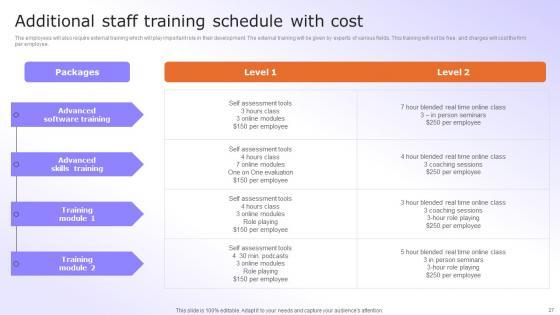 The employees will also require external training which will play important role in their development. The external training will be given by experts of various fields. This training will not be free, and charges will cost the firm per employee. Create an editable Digital Advancement Checklist Additional Staff Training Schedule With Cost Brochure Pdf that communicates your idea and engages your audience. Whether you are presenting a business or an educational presentation, pre-designed presentation templates help save time. Digital Advancement Checklist Additional Staff Training Schedule With Cost Brochure Pdf is highly customizable and very easy to edit, covering many different styles from creative to business presentations. Slidegeeks has creative team members who have crafted amazing templates. So, go and get them without any delay. The employees will also require external training which will play important role in their development. The external training will be given by experts of various fields. This training will not be free, and charges will cost the firm per employee.