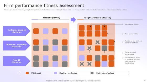 This slide provides information regarding the firm performance that will be assessed and targets that will set for next three years. Firm will decide whether to invest, modernize or replace the key activities. Whether you have daily or monthly meetings, a brilliant presentation is necessary. Digital Advancement Checklist Firm Performance Fitness Assessment Brochure Pdf can be your best option for delivering a presentation. Represent everything in detail using Digital Advancement Checklist Firm Performance Fitness Assessment Brochure Pdf and make yourself stand out in meetings. The template is versatile and follows a structure that will cater to your requirements. All the templates prepared by Slidegeeks are easy to download and edit. Our research experts have taken care of the corporate themes as well. So, give it a try and see the results. This slide provides information regarding the firm performance that will be assessed and targets that will set for next three years. Firm will decide whether to invest, modernize or replace the key activities.