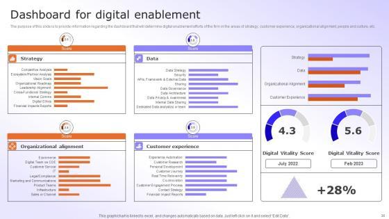 The purpose of this slide is to provide information regarding the dashboard that will determine digital enablement efforts of the firm in the areas of strategy, customer experience, organizational alignment, people and culture, etc. From laying roadmaps to briefing everything in detail, our templates are perfect for you. You can set the stage with your presentation slides. All you have to do is download these easy-to-edit and customizable templates. Digital Advancement Checklist Dashboard For Digital Enablement Portrait Pdf will help you deliver an outstanding performance that everyone would remember and praise you for. Do download this presentation today. The purpose of this slide is to provide information regarding the dashboard that will determine digital enablement efforts of the firm in the areas of strategy, customer experience, organizational alignment, people and culture, etc.