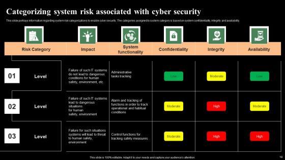 This slide portrays information regarding system risk categorizations to enable cyber security. The categories assigned to system category is based on system confidentiality, integrity and availability. Take your projects to the next level with our ultimate collection of Categorizing System Risk Associated With Cyber Security Monitoring Digital Assets Professional Pdf Slidegeeks has designed a range of layouts that are perfect for representing task or activity duration, keeping track of all your deadlines at a glance. Tailor these designs to your exact needs and give them a truly corporate look with your own brand colors they well make your projects stand out from the rest. This slide portrays information regarding system risk categorizations to enable cyber security. The categories assigned to system category is based on system confidentiality, integrity and availability.
