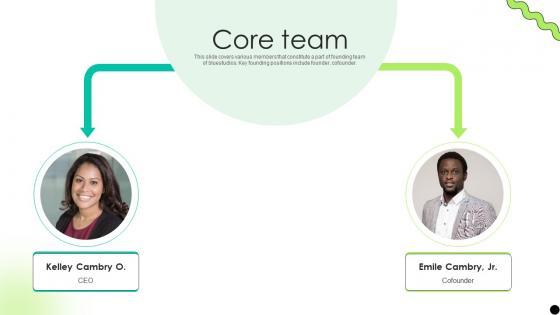 This slide covers various members that constitute a part of founding team of bluestudios. Key founding positions include founder, cofounder. There are so many reasons you need a Core Team Digital Payment Platform Pitch Deck. The first reason is you can not spend time making everything from scratch, Thus, Slidegeeks has made presentation templates for you too. You can easily download these templates from our website easily. This slide covers various members that constitute a part of founding team of bluestudios. Key founding positions include founder, cofounder.