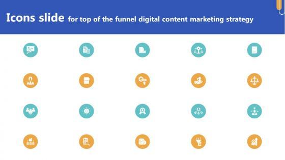 Download our innovative and attention grabbing Icons Slide For Top Of The Funnel Digital Content Marketing Strategy SS V template. The set of slides exhibit completely customizable icons. These icons can be incorporated into any business presentation. So download it immediately to clearly communicate with your clientele. Our Icons Slide For Top Of The Funnel Digital Content Marketing Strategy SS V are topically designed to provide an attractive backdrop to any subject. Use them to look like a presentation pro.