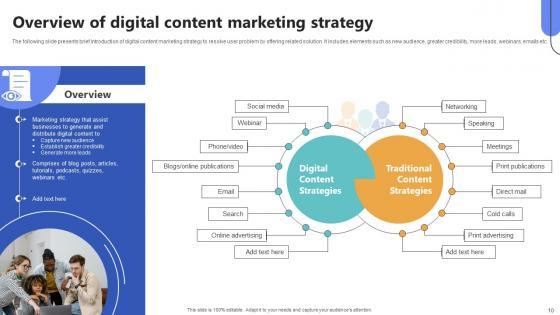 Take advantage of this well-researched and professionally-designed Top Of The Funnel Digital Content Marketing Strategy CD V to ace your next business meeting. Use this PPT complete deck to impress the management with your ideas for business growth and revenue increase. Use the sixty five-slide Template Bundle to leave no stone unturned as you present each step of your process. Employ the visual tools within the slides such as graphs, charts, and tables to ensure that the audience can never look away from the presentation. With attractive visuals, easy to understand structure, and your knowledge, your presentation will have the attention it deserves. Download this PPT Template from the link below. Our Top Of The Funnel Digital Content Marketing Strategy CD V are topically designed to provide an attractive backdrop to any subject. Use them to look like a presentation pro.