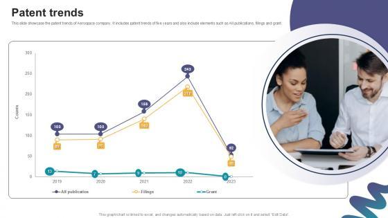 This slide showcase the patent trends of Aerospace company. It includes patent trends of five years and also include elements such as All publications, filings and grant. Presenting this PowerPoint presentation, titled Patent Trends Digital Marketings Strategies PPT Example CP SS V, with topics curated by our researchers after extensive research. This editable presentation is available for immediate download and provides attractive features when used. Download now and captivate your audience. Presenting this Patent Trends Digital Marketings Strategies PPT Example CP SS V. Our researchers have carefully researched and created these slides with all aspects taken into consideration. This is a completely customizable Patent Trends Digital Marketings Strategies PPT Example CP SS V that is available for immediate downloading. Download now and make an impact on your audience. Highlight the attractive features available with our PPTs. This slide showcase the patent trends of Aerospace company. It includes patent trends of five years and also include elements such as All publications, filings and grant.