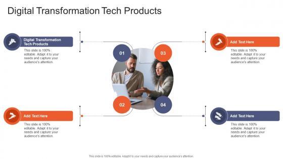 Presenting our innovatively-designed set of slides titled Digital Transformation Tech Products In Powerpoint And Google Slides Cpb. This completely editable PowerPoint graphic exhibits Digital Transformation Tech Products that will help you convey the message impactfully. It can be accessed with Google Slides and is available in both standard screen and widescreen aspect ratios. Apart from this, you can download this well-structured PowerPoint template design in different formats like PDF, JPG, and PNG. So, click the download button now to gain full access to this PPT design. Our Digital Transformation Tech Products In Powerpoint And Google Slides Cpb are topically designed to provide an attractive backdrop to any subject. Use them to look like a presentation pro.