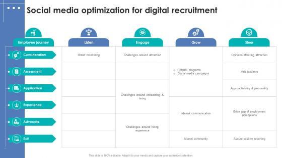 Do you know about Slidesgeeks Integrating Automation For Effective Business Social Media Optimization For Digital Recruitment These are perfect for delivering any kind od presentation. Using it, create PowerPoint presentations that communicate your ideas and engage audiences. Save time and effort by using our pre-designed presentation templates that are perfect for a wide range of topic. Our vast selection of designs covers a range of styles, from creative to business, and are all highly customizable and easy to edit. Download as a PowerPoint template or use them as Google Slides themes. Our Integrating Automation For Effective Business Social Media Optimization For Digital Recruitment are topically designed to provide an attractive backdrop to any subject. Use them to look like a presentation pro.