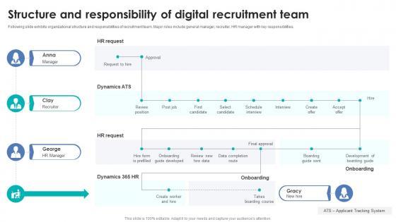 Following slide exhibits organizational structure and responsibilities of recruitment team. Major roles include general manager, recruiter, HR manager with key responsibilities. Slidegeeks is one of the best resources for PowerPoint templates. You can download easily and regulate Integrating Automation For Effective Business Structure And Responsibility Of Digital Recruitment for your personal presentations from our wonderful collection. A few clicks is all it takes to discover and get the most relevant and appropriate templates. Use our Templates to add a unique zing and appeal to your presentation and meetings. All the slides are easy to edit and you can use them even for advertisement purposes. Following slide exhibits organizational structure and responsibilities of recruitment team. Major roles include general manager, recruiter, HR manager with key responsibilities.