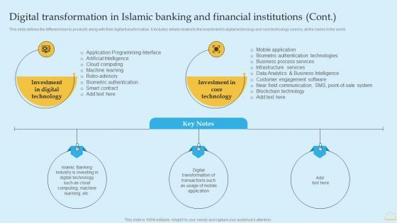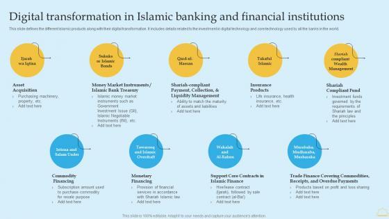 This slide defines the different Islamic products along with their digital transformation. It includes details related to the investment in digital technology and core technology used by all the banks in the world. Are you in need of a template that can accommodate all of your creative concepts This one is crafted professionally and can be altered to fit any style. Use it with Google Slides or PowerPoint. Include striking photographs, symbols, depictions, and other visuals. Fill, move around, or remove text boxes as desired. Test out color palettes and font mixtures. Edit and save your work, or work with colleagues. Download In Depth Analysis Of Islamic Banking Digital Transformation In Islamic Banking And Financial Microsoft PDF and observe how to make your presentation outstanding. Give an impeccable presentation to your group and make your presentation unforgettable. This slide defines the different Islamic products along with their digital transformation. It includes details related to the investment in digital technology and core technology used by all the banks in the world.