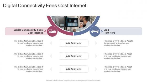Introducing our well designed Digital Connectivity Fees Cost Internet In Powerpoint And Google Slides Cpb. This PowerPoint design presents information on topics like Digital Connectivity Fees Cost Internet. As it is predesigned it helps boost your confidence level. It also makes you a better presenter because of its high-quality content and graphics. This PPT layout can be downloaded and used in different formats like PDF, PNG, and JPG. Not only this, it is available in both Standard Screen and Widescreen aspect ratios for your convenience. Therefore, click on the download button now to persuade and impress your audience. Our Digital Connectivity Fees Cost Internet In Powerpoint And Google Slides Cpb are topically designed to provide an attractive backdrop to any subject. Use them to look like a presentation pro.