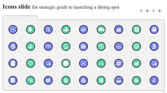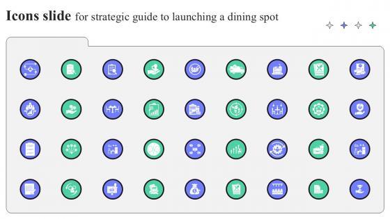 Help your business to create an attention-grabbing presentation using our Icons Slide For Strategic Guide To Launching A Dining Spot Ppt Example set of slides. The slide contains innovative icons that can be flexibly edited. Choose this Icons Slide For Strategic Guide To Launching A Dining Spot Ppt Example template to create a satisfactory experience for your customers. Go ahead and click the download button. Our Icons Slide For Strategic Guide To Launching A Dining Spot Ppt Example are topically designed to provide an attractive backdrop to any subject. Use them to look like a presentation pro.