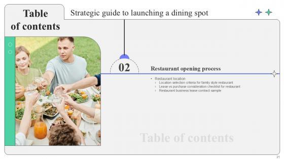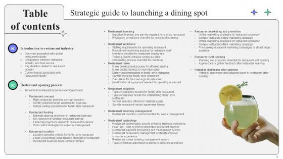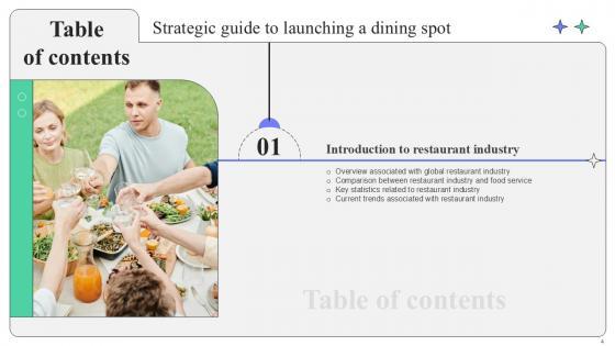 Strategic Guide To Launching A Dining Spot Table Of Contents Strategic Guide To Launching Ppt Sample