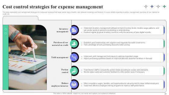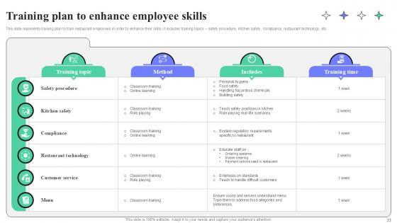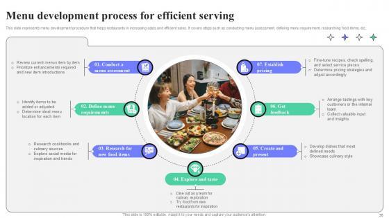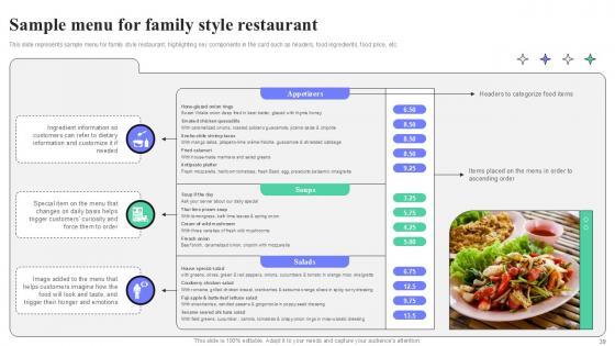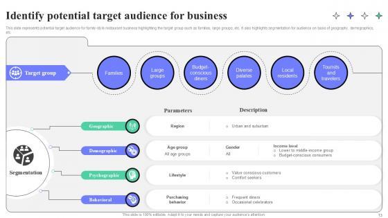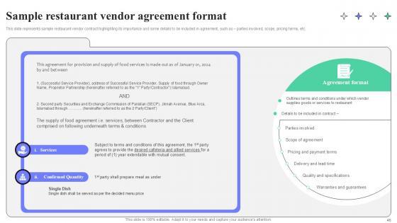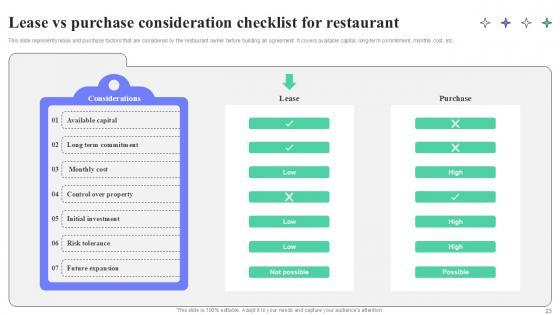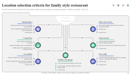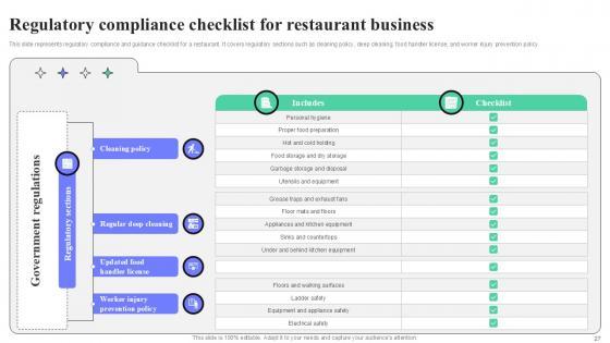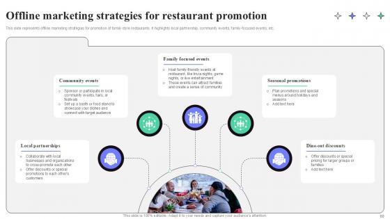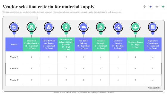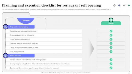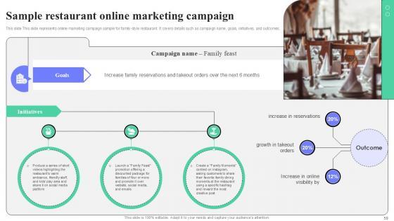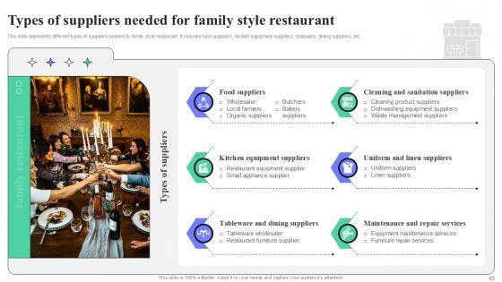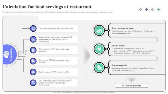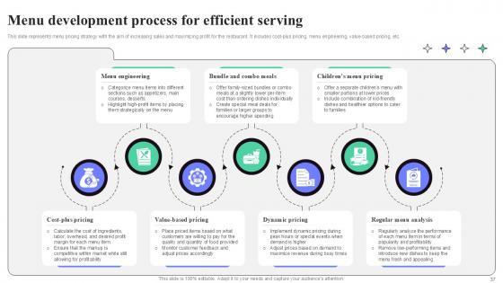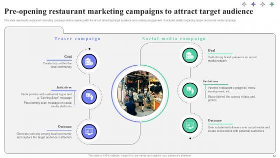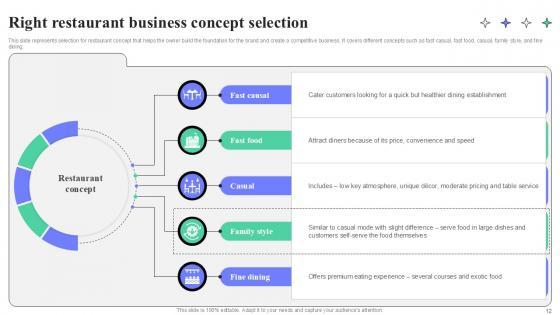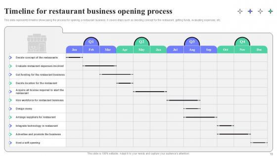 This Strategic Guide To Launching A Dining Spot Ppt Example is designed to help you retain your audiences attention. This content-ready PowerPoint Template enables you to take your audience on a journey and share information in a way that is easier to recall. It helps you highlight the crucial parts of your work so that the audience does not get saddled with information download. This seventy five-slide PPT Deck comes prepared with the graphs and charts you could need to showcase your information through visuals. You only need to enter your own data in them. Download this editable PowerPoint Theme and walk into that meeting with confidence. Our Strategic Guide To Launching A Dining Spot Ppt Example are topically designed to provide an attractive backdrop to any subject. Use them to look like a presentation pro.