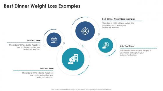Introducing our well designed Best Dinner Weight Loss Examples In Powerpoint And Google Slides Cpb. This PowerPoint design presents information on topics like Best Dinner Weight Loss Examples. As it is predesigned it helps boost your confidence level. It also makes you a better presenter because of its high quality content and graphics. This PPT layout can be downloaded and used in different formats like PDF, PNG, and JPG. Not only this, it is available in both Standard Screen and Widescreen aspect ratios for your convenience. Therefore, click on the download button now to persuade and impress your audience. Our Best Dinner Weight Loss Examples In Powerpoint And Google Slides Cpb are topically designed to provide an attractive backdrop to any subject. Use them to look like a presentation pro.