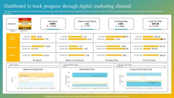 This slide provides an overview of the dashboard depicting the status of the digital marketing campaign with the help of performance metrics. The dashboard includes ad spend, return on ad spend, purchase rate and cost per order. Crafting an eye-catching presentation has never been more straightforward. Let your presentation shine with this tasteful yet straightforward Effective Customer Engagement With Direct Response Dashboard To Track Progress Professional Pdf template. It offers a minimalistic and classy look that is great for making a statement. The colors have been employed intelligently to add a bit of playfulness while still remaining professional. Construct the ideal Effective Customer Engagement With Direct Response Dashboard To Track Progress Professional Pdf that effortlessly grabs the attention of your audience. Begin now and be certain to wow your customers. This slide provides an overview of the dashboard depicting the status of the digital marketing campaign with the help of performance metrics. The dashboard includes ad spend, return on ad spend, purchase rate and cost per order.