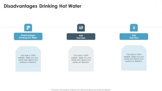 Presenting our innovatively-designed set of slides titled Disadvantages Drinking Hot Water In Powerpoint And Google Slides Cpb. This completely editable PowerPoint graphic exhibits Disadvantages Drinking Hot Water that will help you convey the message impactfully. It can be accessed with Google Slides and is available in both standard screen and widescreen aspect ratios. Apart from this, you can download this well-structured PowerPoint template design in different formats like PDF, JPG, and PNG. So, click the download button now to gain full access to this PPT design. Our Disadvantages Drinking Hot Water In Powerpoint And Google Slides Cpb are topically designed to provide an attractive backdrop to any subject. Use them to look like a presentation pro.