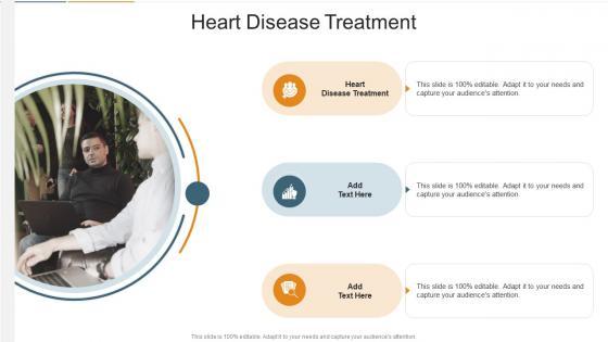Introducing our well designed Heart Disease Treatment In Powerpoint And Google Slides Cpb. This PowerPoint design presents information on topics like Heart Disease Treatment. As it is predesigned it helps boost your confidence level. It also makes you a better presenter because of its high-quality content and graphics. This PPT layout can be downloaded and used in different formats like PDF, PNG, and JPG. Not only this, it is available in both Standard Screen and Widescreen aspect ratios for your convenience. Therefore, click on the download button now to persuade and impress your audience. Our Heart Disease Treatment In Powerpoint And Google Slides Cpb are topically designed to provide an attractive backdrop to any subject. Use them to look like a presentation pro.