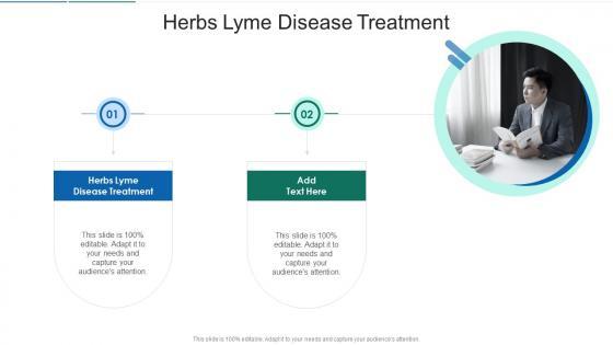 Presenting our innovatively-designed set of slides titled Herbs Lyme Disease Treatment In Powerpoint And Google Slides Cpb. This completely editable PowerPoint graphic exhibits Herbs Lyme Disease Treatment that will help you convey the message impactfully. It can be accessed with Google Slides and is available in both standard screen and widescreen aspect ratios. Apart from this, you can download this well-structured PowerPoint template design in different formats like PDF, JPG, and PNG. So, click the download button now to gain full access to this PPT design. Our Herbs Lyme Disease Treatment In Powerpoint And Google Slides Cpb are topically designed to provide an attractive backdrop to any subject. Use them to look like a presentation pro.