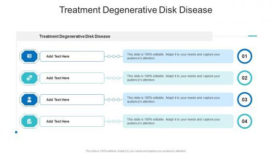 Presenting our innovatively designed set of slides titled Treatment Degenerative Disk Disease In Powerpoint And Google Slides Cpb This completely editable PowerPoint graphic exhibits Treatment Degenerative Disk Disease that will help you convey the message impactfully. It can be accessed with Google Slides and is available in both standard screen and widescreen aspect ratios. Apart from this, you can download this well structured PowerPoint template design in different formats like PDF, JPG, and PNG. So, click the download button now to gain full access to this PPT design. Our Treatment Degenerative Disk Disease In Powerpoint And Google Slides Cpb are topically designed to provide an attractive backdrop to any subject. Use them to look like a presentation pro.
