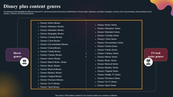 Disney plus content genres PowerPoint Presentation Templates and Google Slides