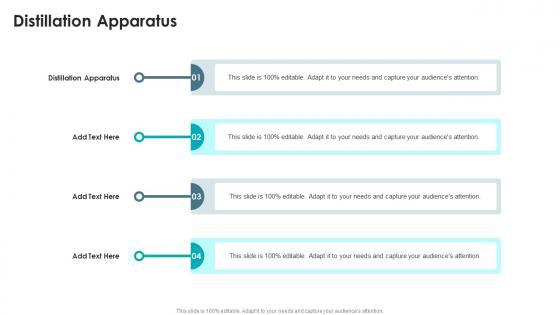Introducing our well designed Distillation Apparatus In Powerpoint And Google Slides Cpb. This PowerPoint design presents information on topics like Distillation Apparatus. As it is predesigned it helps boost your confidence level. It also makes you a better presenter because of its high quality content and graphics. This PPT layout can be downloaded and used in different formats like PDF, PNG, and JPG. Not only this, it is available in both Standard Screen and Widescreen aspect ratios for your convenience. Therefore, click on the download button now to persuade and impress your audience. Our Distillation Apparatus In Powerpoint And Google Slides Cpb are topically designed to provide an attractive backdrop to any subject. Use them to look like a presentation pro.
