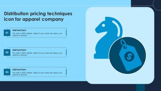 Showcasing this set of slides titled Distribution Pricing Techniques Icon For Apparel Company Formats Pdf The topics addressed in these templates are Distribution Pricing Techniques, Icon For Apparel Company All the content presented in this PPT design is completely editable. Download it and make adjustments in color, background, font etc. as per your unique business setting. Our Distribution Pricing Techniques Icon For Apparel Company Formats Pdf are topically designed to provide an attractive backdrop to any subject. Use them to look like a presentation pro.