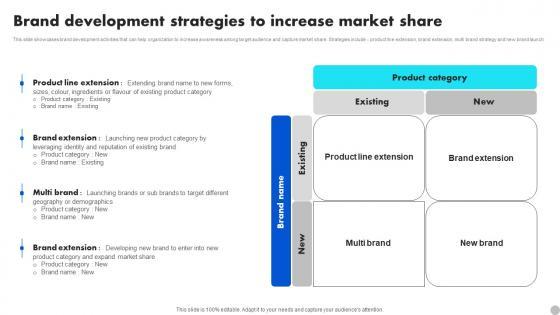 This slide showcases brand development activities that can help organization to increase awareness among target audience and capture market share. Strategies include - product line extension, brand extension, multi brand strategy and new brand launch. There are so many reasons you need a Brand Development Strategies To Increase Market Share Brand Diversification Approach Infographics Pdf The first reason is you can not spend time making everything from scratch, Thus, Slidegeeks has made presentation templates for you too. You can easily download these templates from our website easily. This slide showcases brand development activities that can help organization to increase awareness among target audience and capture market share. Strategies include - product line extension, brand extension, multi brand strategy and new brand launch.