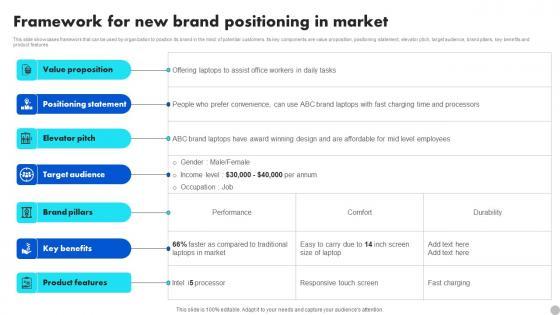 This slide showcases framework that can be used by organization to position its brand in the mind of potential customers. Its key components are value proposition, positioning statement, elevator pitch, target audience, brand pillars, key benefits and product features. This Framework For New Brand Positioning In Market Brand Diversification Approach Infographics Pdf is perfect for any presentation, be it in front of clients or colleagues. It is a versatile and stylish solution for organizing your meetings. The Framework For New Brand Positioning In Market Brand Diversification Approach Infographics Pdf features a modern design for your presentation meetings. The adjustable and customizable slides provide unlimited possibilities for acing up your presentation. Slidegeeks has done all the homework before launching the product for you. So, do not wait, grab the presentation templates today This slide showcases framework that can be used by organization to position its brand in the mind of potential customers. Its key components are value proposition, positioning statement, elevator pitch, target audience, brand pillars, key benefits and product features.