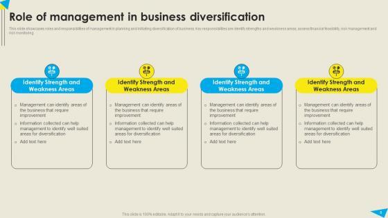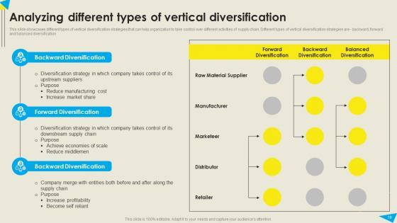 You will save yourself your energy and hours of time when you choose to use this impactful PowerPoint Deck. This Strategic Diversification Plan For Risk Reduction And Market Share Expansion Complete Deck has been tailor-made to your business needs which ensures that you will always be prepared for that next meeting. Worry can not touch you when you present in your area of expertise using this PPT Template Bundle. With a modern design and easy to follow structure, this PowerPoint Presentation has seventy one slides, which ensures that you can cover you need to without much work. Create your next presentation using this PPT Theme to deliver a memorable performance. Our Strategic Diversification Plan For Risk Reduction And Market Share Expansion Complete Deck are topically designed to provide an attractive backdrop to any subject. Use them to look like a presentation pro.